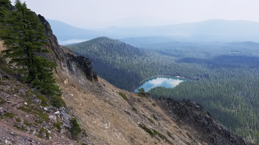 The ridgeline travel was much more rugged and difficult than I expected, and it was laborious and slow going. I reached the middle peak, then turned north towards Lakeview. It was another difficult ridgeline followed by the loose rocky scramble up to the top of Lakeview. The views from the summit were smoky, but still wonderful.
